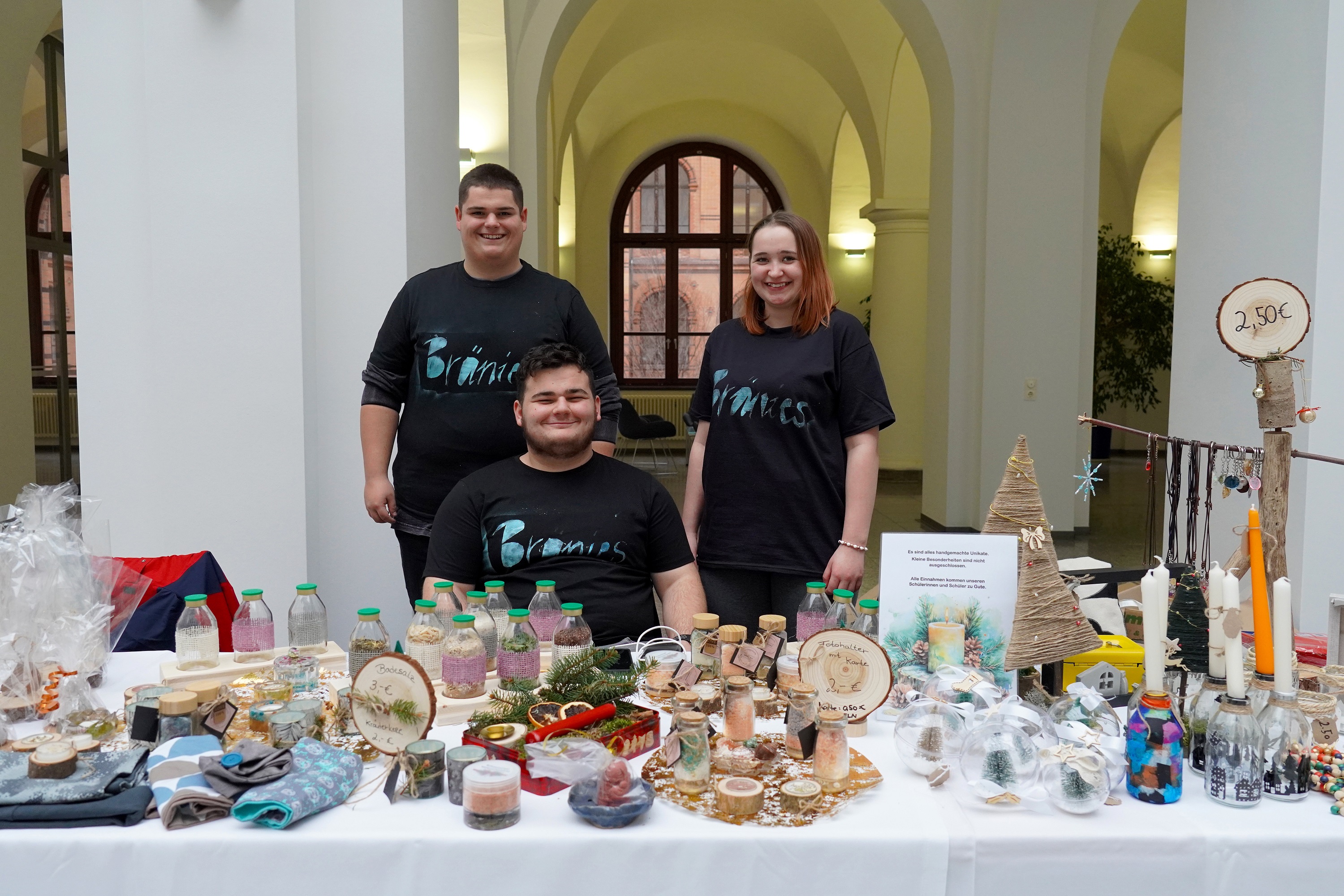 So fuhren drei Schülerinnen und Schüler zusammen mit ihrer Klassenlehrerin am 11.12.2024 nach Dresden, um dort den Mitarbeiterinnen und Mitarbeitern des Kultusministeriums unsere liebevoll handgefertigten weihnachtlichen Dekorations- und Geschenkartikel anzubieten.