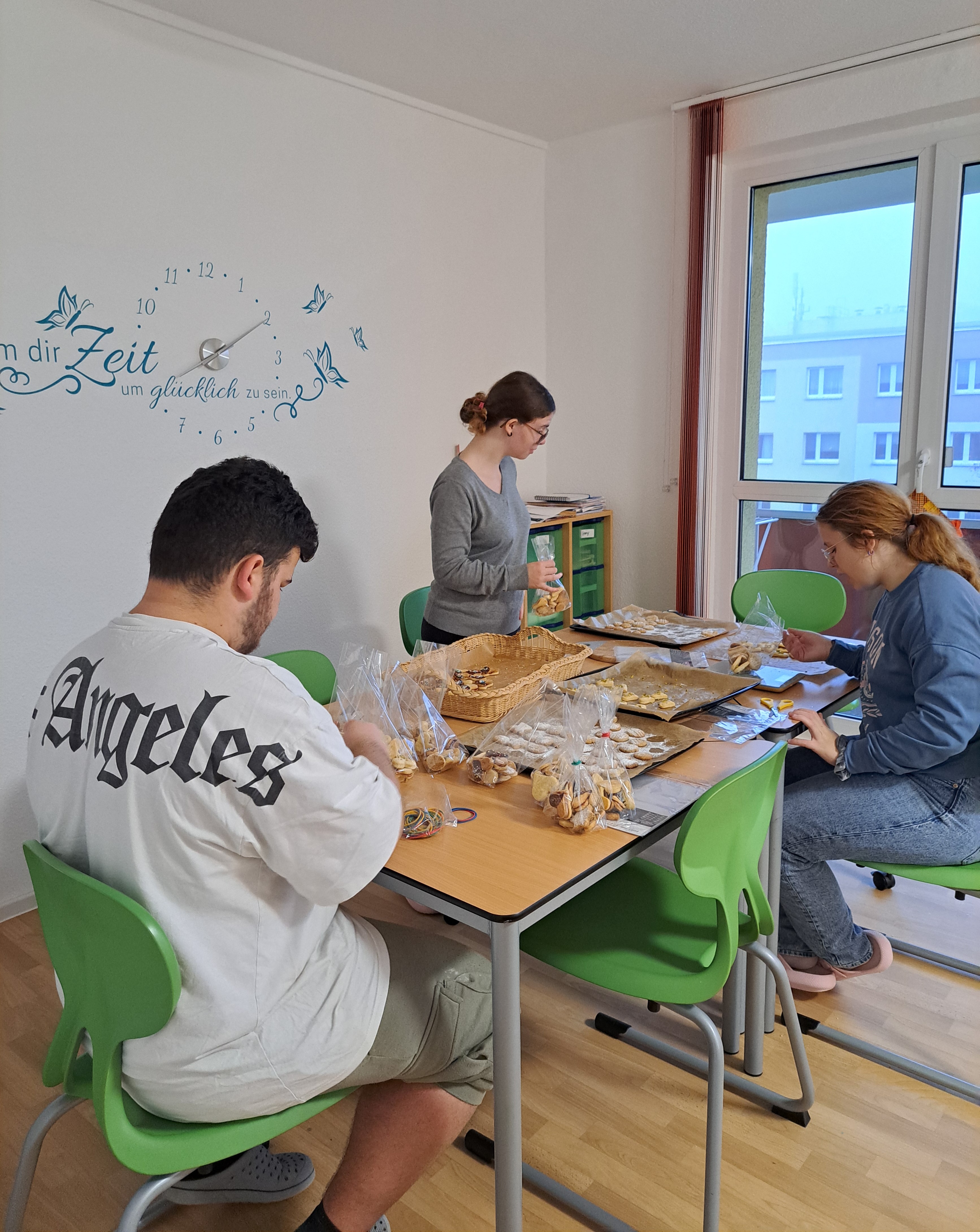 In Vorbereitung auf ein relativ selbständiges Leben gestalten die Schülerinnen und Schüler, unter Anleitung ihrer Klassenlehrerinnen und Erzieherinnen, die Wohnungen nach ihren eigenen Vorstellungen. So wurden u. a. in die Mietwohnungen Küchen eingebaut, die Zimmer in Lern- und Wohnräume umgestaltet, die Accessoires wie Fenstervorhänge, Wandschmuck und Farbgestaltung ausgesucht sowie die Inneneinrichtung komplettiert.