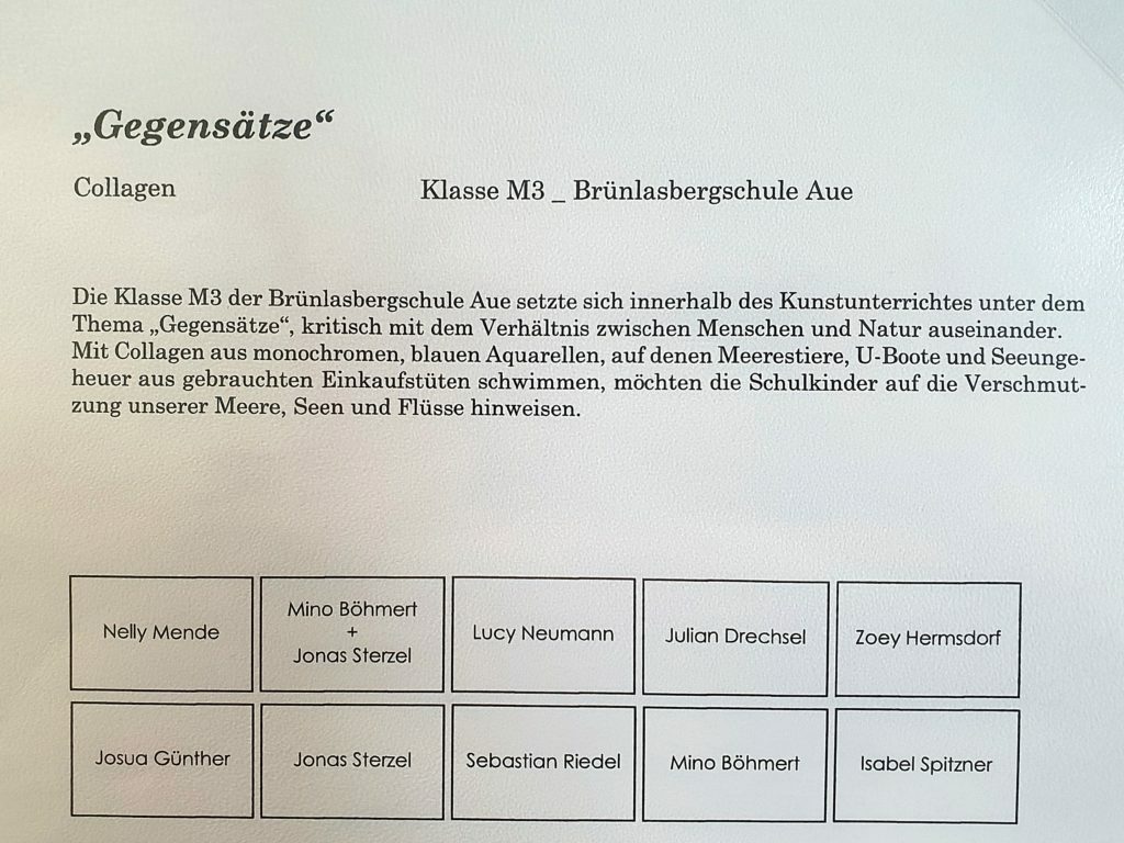 Kunst verbindet, und so besuchten die beiden Klassen zusammen das Kunstwerk „The universe in a pearl“ von Rebecca Horn. Eine gemeinsame Phase der Erkundung und der Annäherung an das Werk stand im Mittelpunkt. Danach ging es zunächst auf getrennten Wegen durch Lößnitz, um sich dann im Alten Postamt wieder zu treffen, diesmal zur Upcycling-Kunst-Ausstellung.