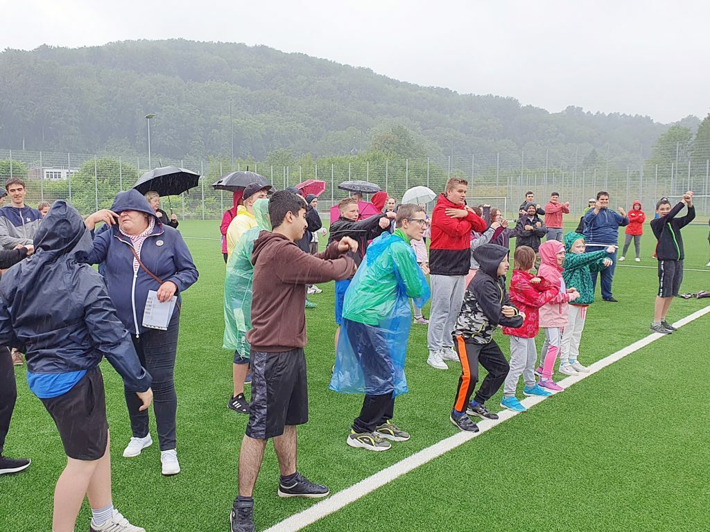 Beim Laufen, Springen, Werfen und Stoßen gaben alle Kinder trotz anhaltenden Dauerregens ihr Bestes und stritten um den Siegerplatz der jeweiligen Altersklassen.
