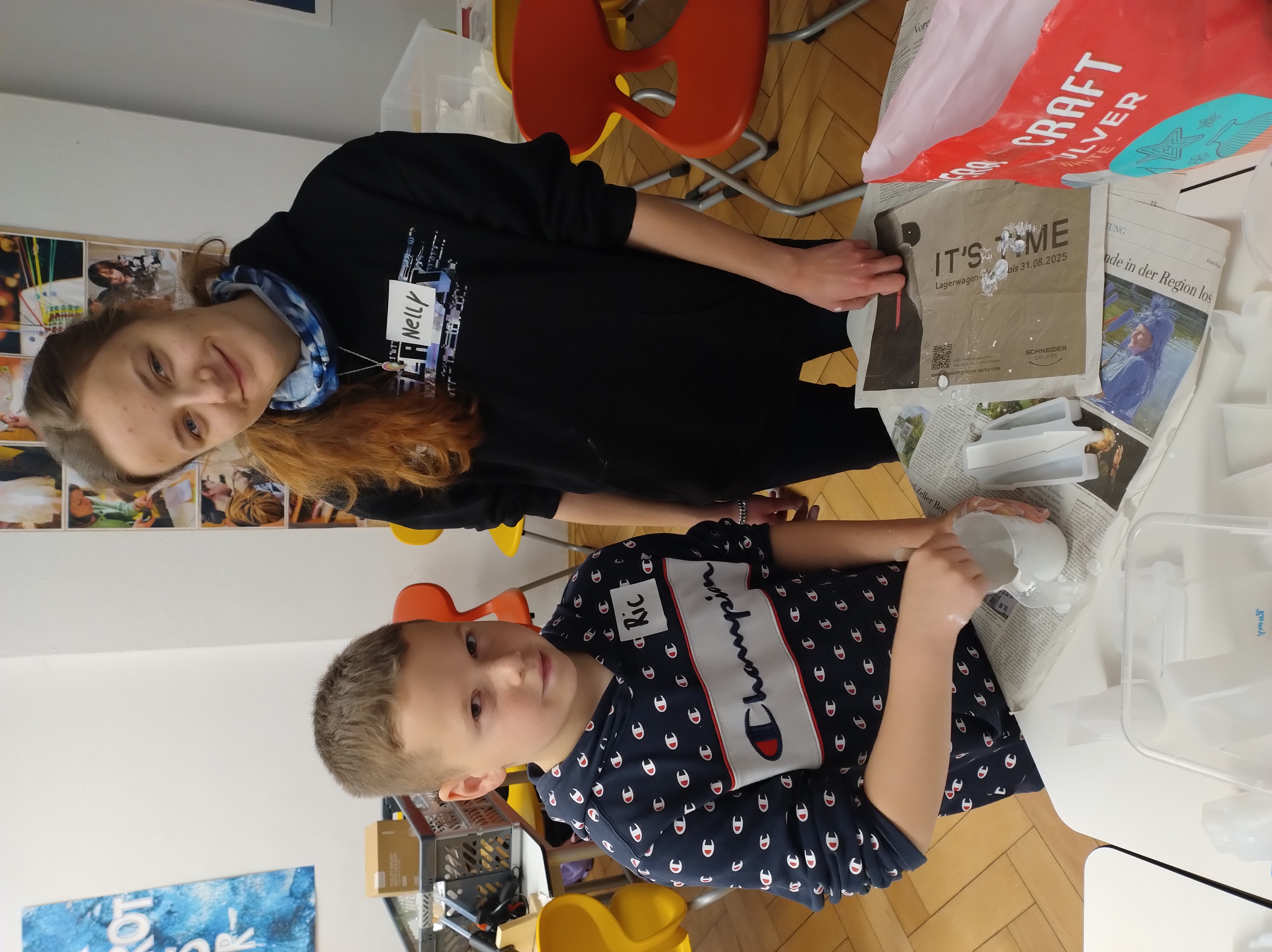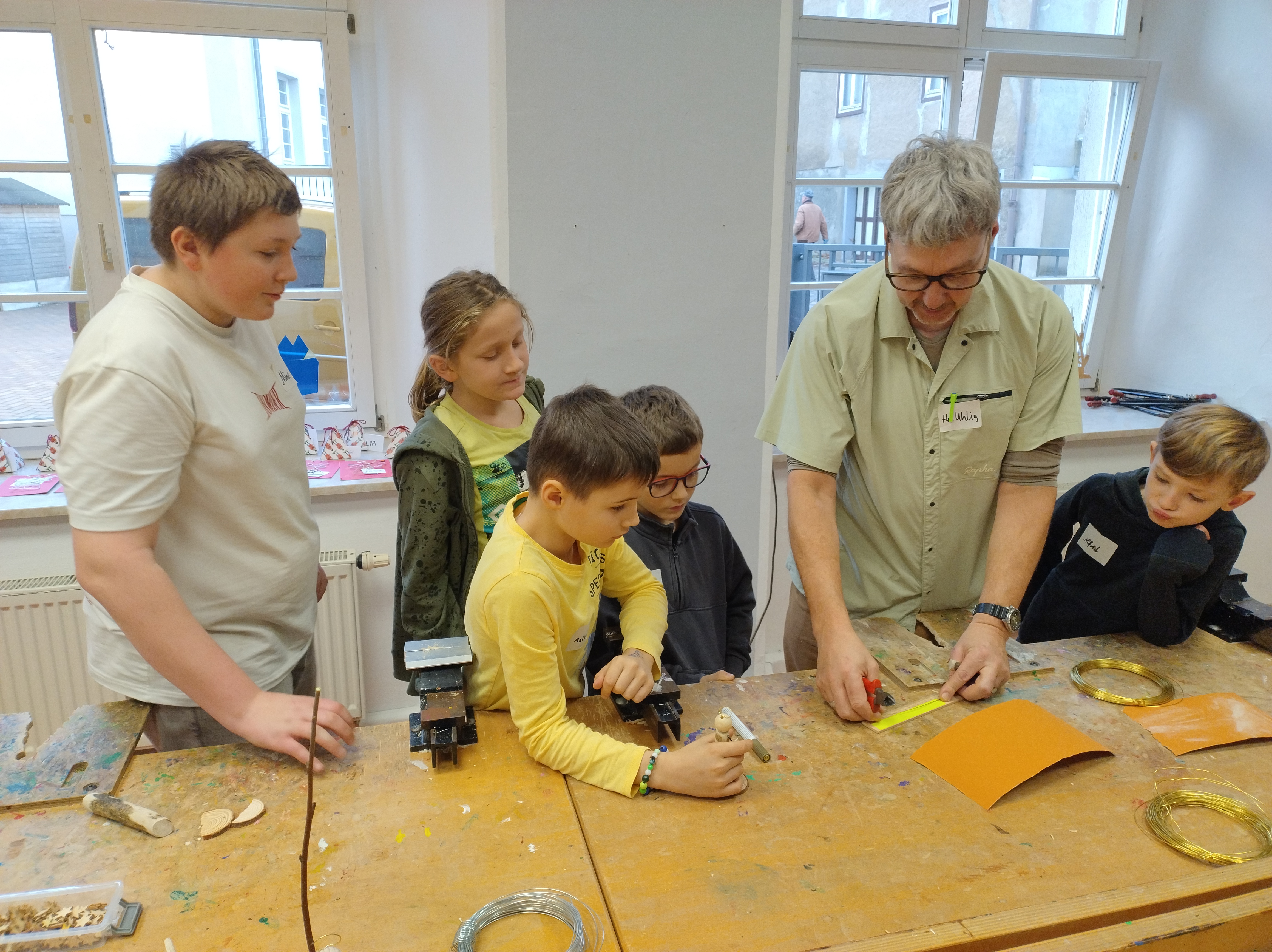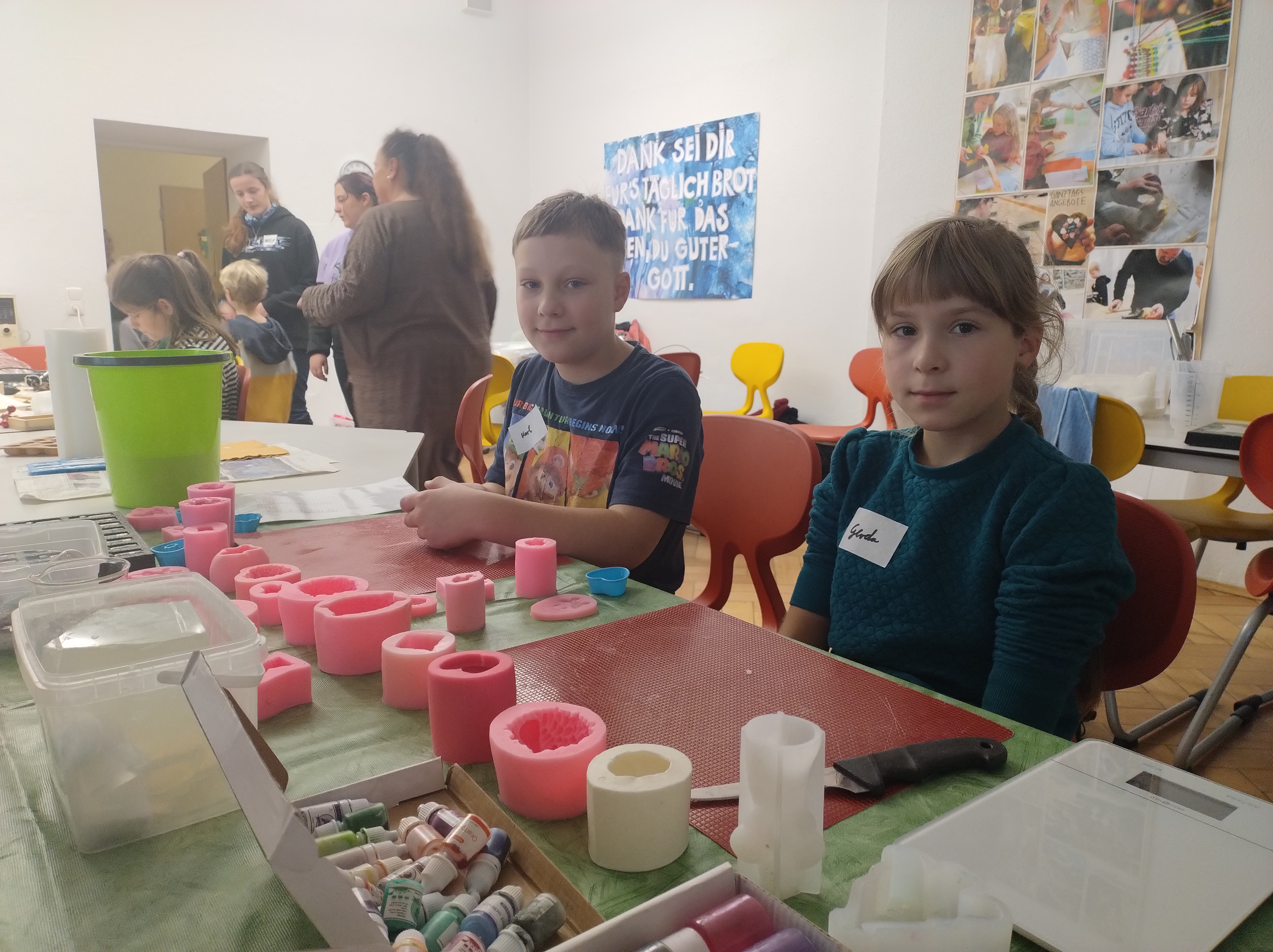 In altersgemischten Gruppen stellten die Kinder beider Schulen gemeinsam handwerkliche Produkte wie Kerzen, Seifen, Holz- und Keramikarbeiten her. Die Schülerinnen und Schüler der Klasse O3 übernahmen dabei verantwortungsvolle Aufgaben und wuchsen sichtbar in ihre Rolle als Anleitende hinein.
